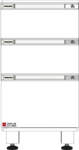En su interior cuenta con un entrepaño regulable en altura, recubierto con capa vinílica y borde en PP con función anti-vuelco y anti-derrame. Su base está diseñada con patas de 8–10 cm en tubo de 2” x 2” con niveladores plásticos, o ruedas en plástico reforzado con banda de rodamiento en polipropileno y freno frontal. Una solución robusta, práctica y segura para el uso diario en el laboratorio.